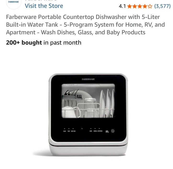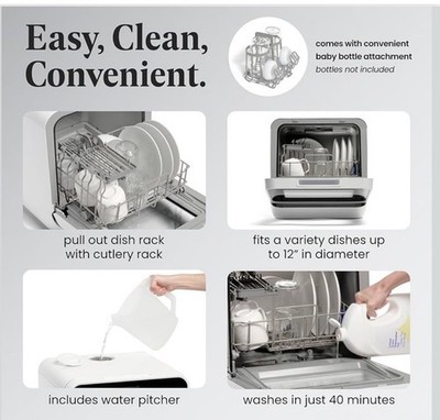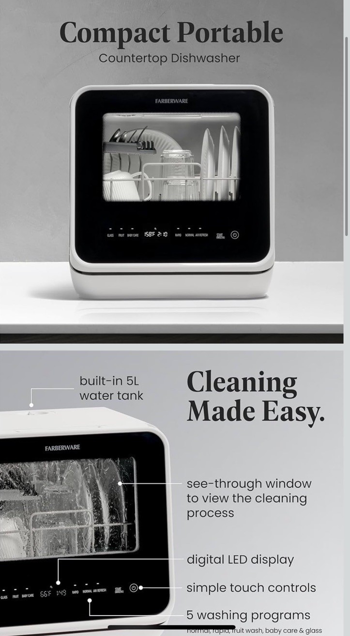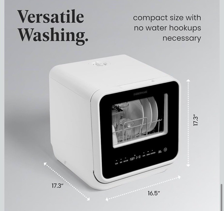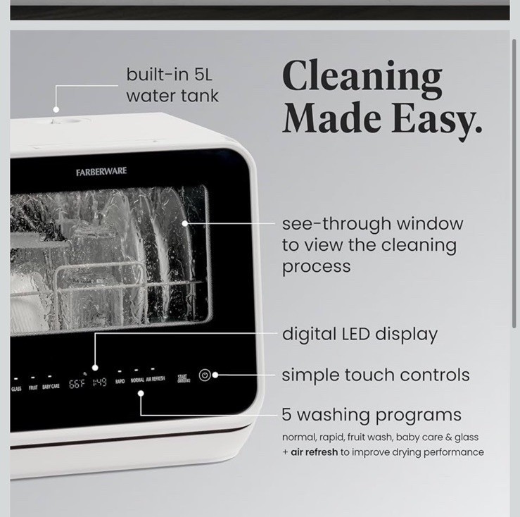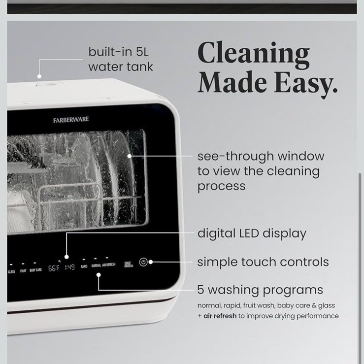 Farberware Portable Countertop Dishwasher 5-Liter Built-in Water Tank -5-Program