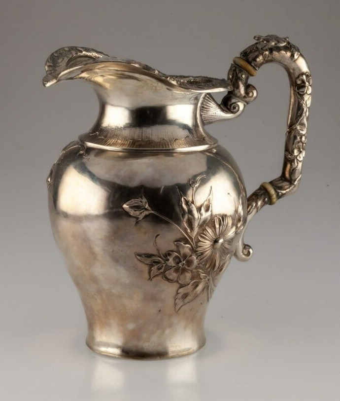 Pieces are in Good Antique Condition. Some toning/tarnish on interior of pieces, but no major dents or defects besides one under handle on sugar and near base on creamer/pitcher. Minor scratches. See photos for details.