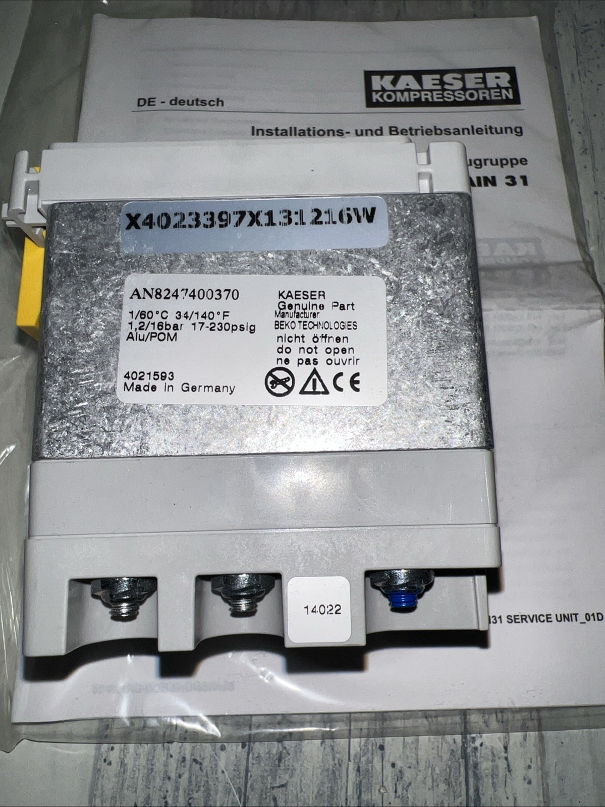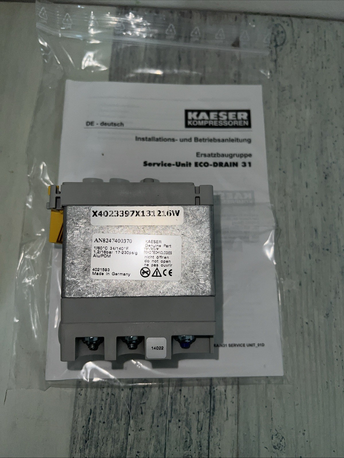 For your consideration is a Kaeser Service Unit Eco Drain AN8247400370, 4021593, 1,2/16bar 17-230pspig