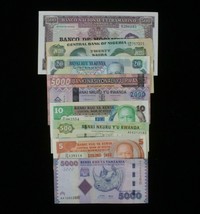 Africa 9-Notes Currency Lotto Kenya, Mozambico, Nigeria, Ruanda Tanzania