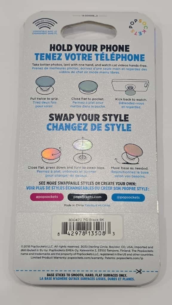 PopSockets PopGrip acts as phone holder and stylish accessory for ANY phone. Our strong adhesive gives you confidence from drops, plus the ability to use as a kickstand, and collapses flat in a sinch. Each PopGrip top is swappable - push, twist and turn to swap PopTops and wirelessly charging. PopGrips are compatible with PopSockets Cases, Mounts, Slides, wireless chargers and most non-PopSockets cases. PopSockets PopGrip will not stick to silicone, highly textured cases, and many soft cases.