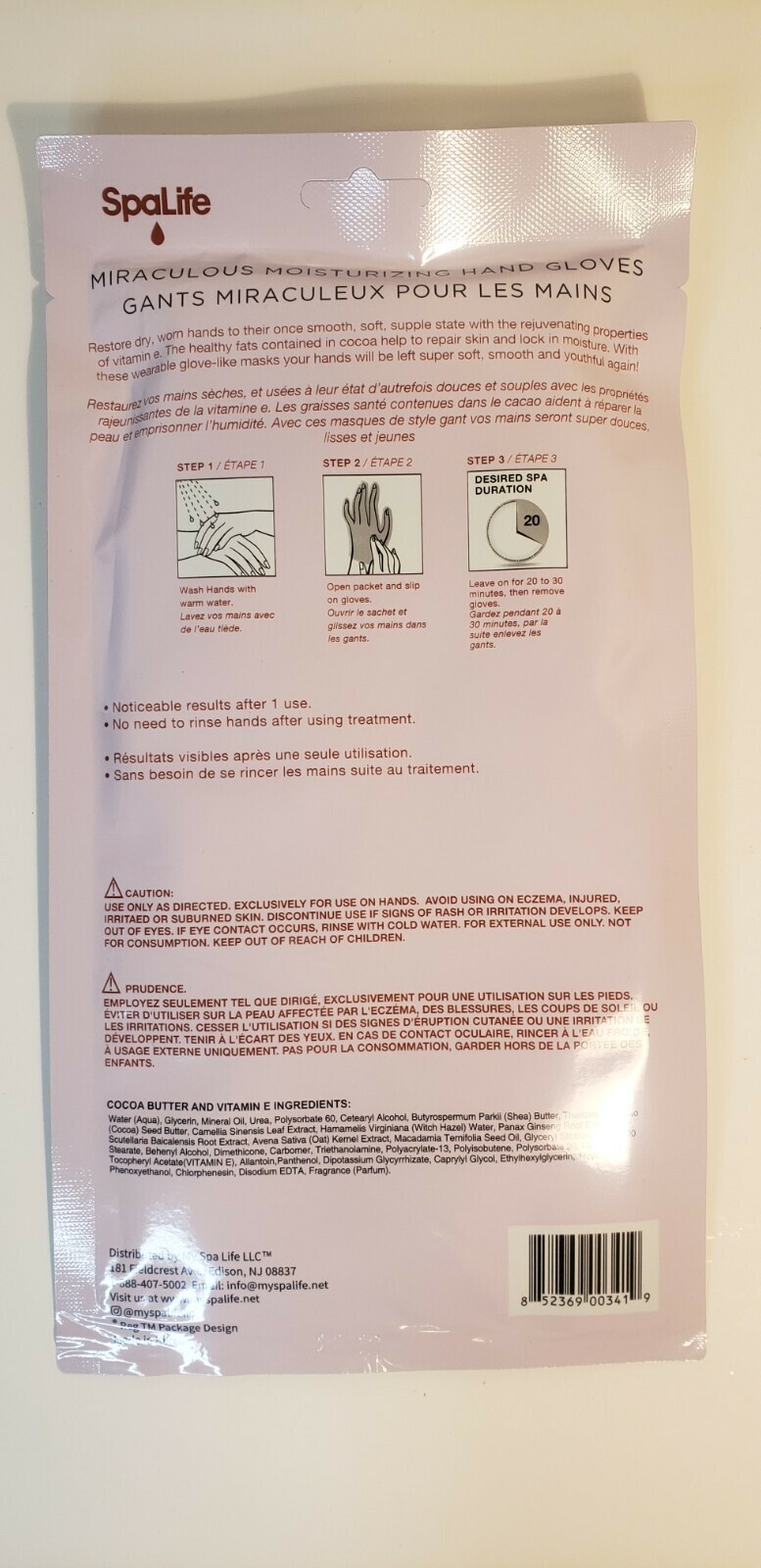 New sealed Spa Life Miraculous Moisturizing Hand Gloves with Cocoa Butter Vitamin E.