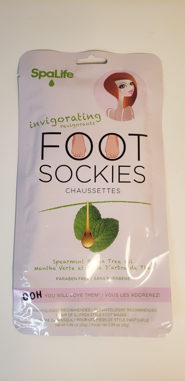 Brand new, unopened package of Spa LifeFoot Sockies. Get your feet back to being beautiful! These invigorating Foot Treatment contain Spearmint Tea Tree Oil to help soothe tired, achy feet. With these wearable slipper-like masks your feet will be left visibly smooth youthful again!