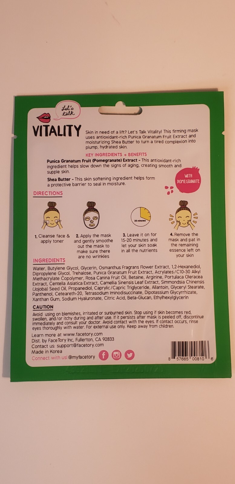 Contains a variety of 7 FaceTory sheet masks to hydrate all skin types!