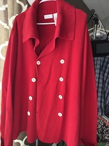 The product is a women's Elisabeth by Liz Claiborne size 3x red cardigan sweater. This plus-sized cardigan is designed for women and features a stylish and classic red color. Made by Liz Claiborne, known for quality and stylish clothing, this cardigan is perfect for adding a pop of color to any outfit.