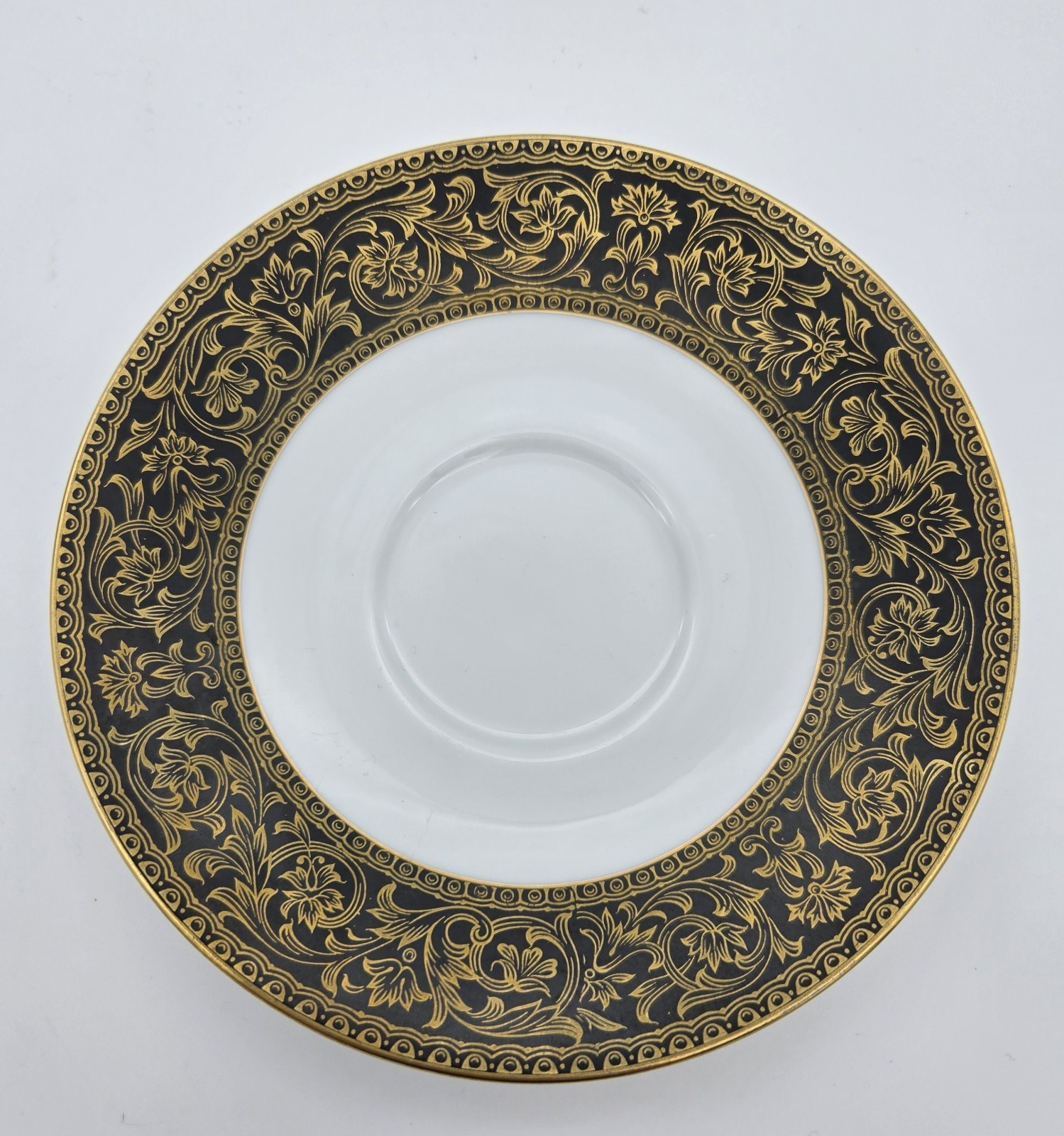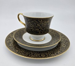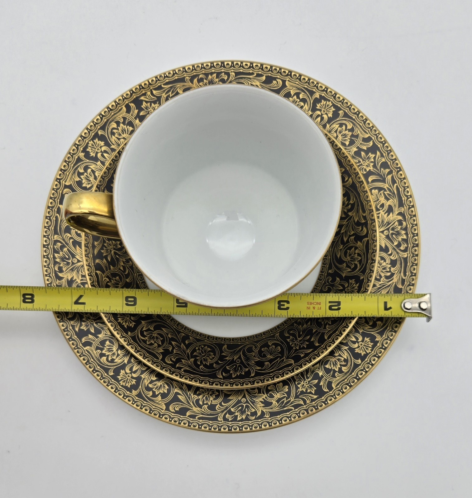 Vintage Sango China Japan Richelieu 3756 Black Gold Cup Saucer Dessert Plate Set