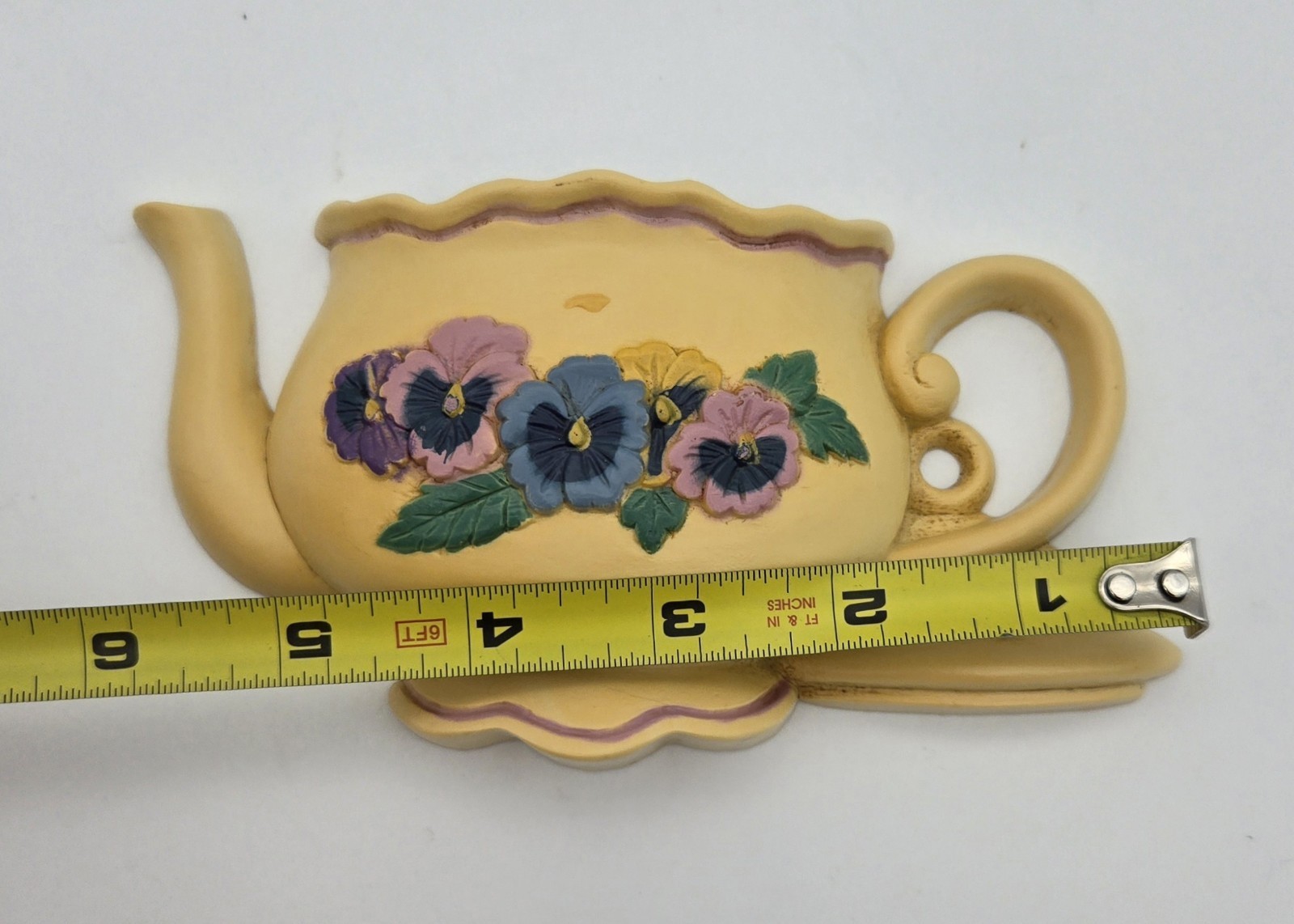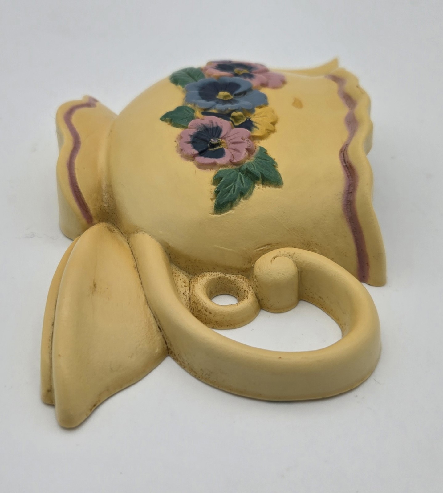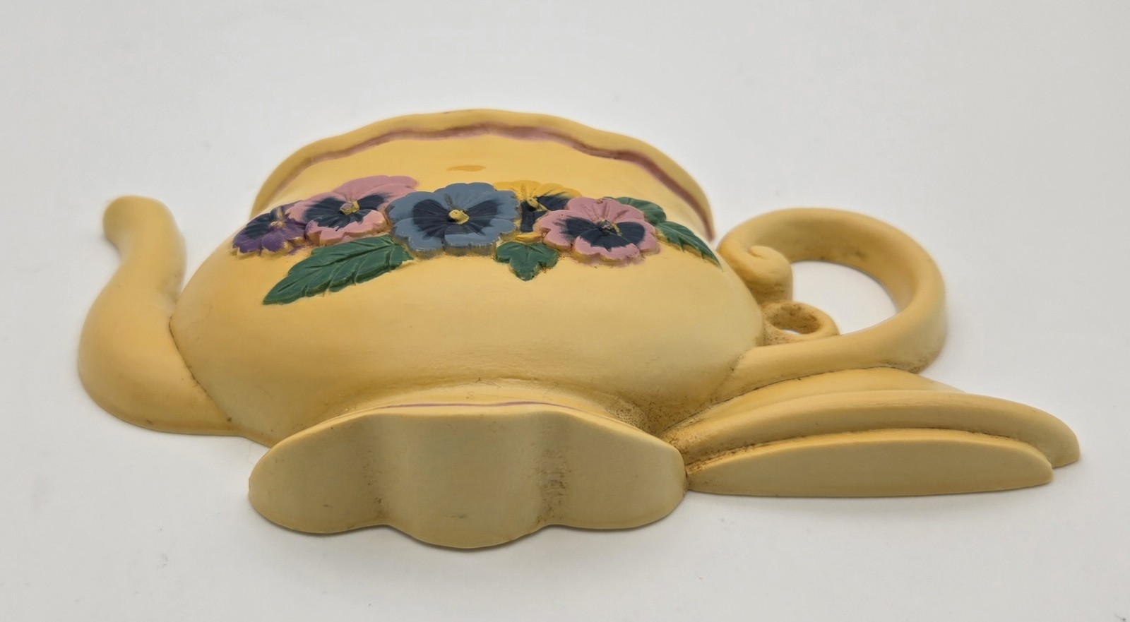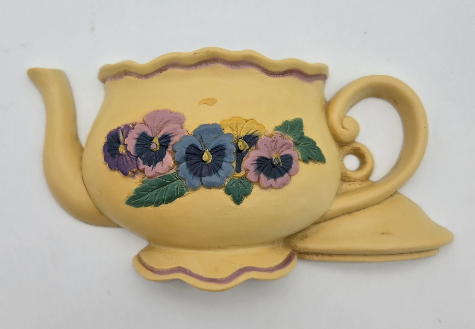 Vintage 1995 Burwood Pansy Teapot Wall Pocket Plaque ? Country Farmhouse Decor