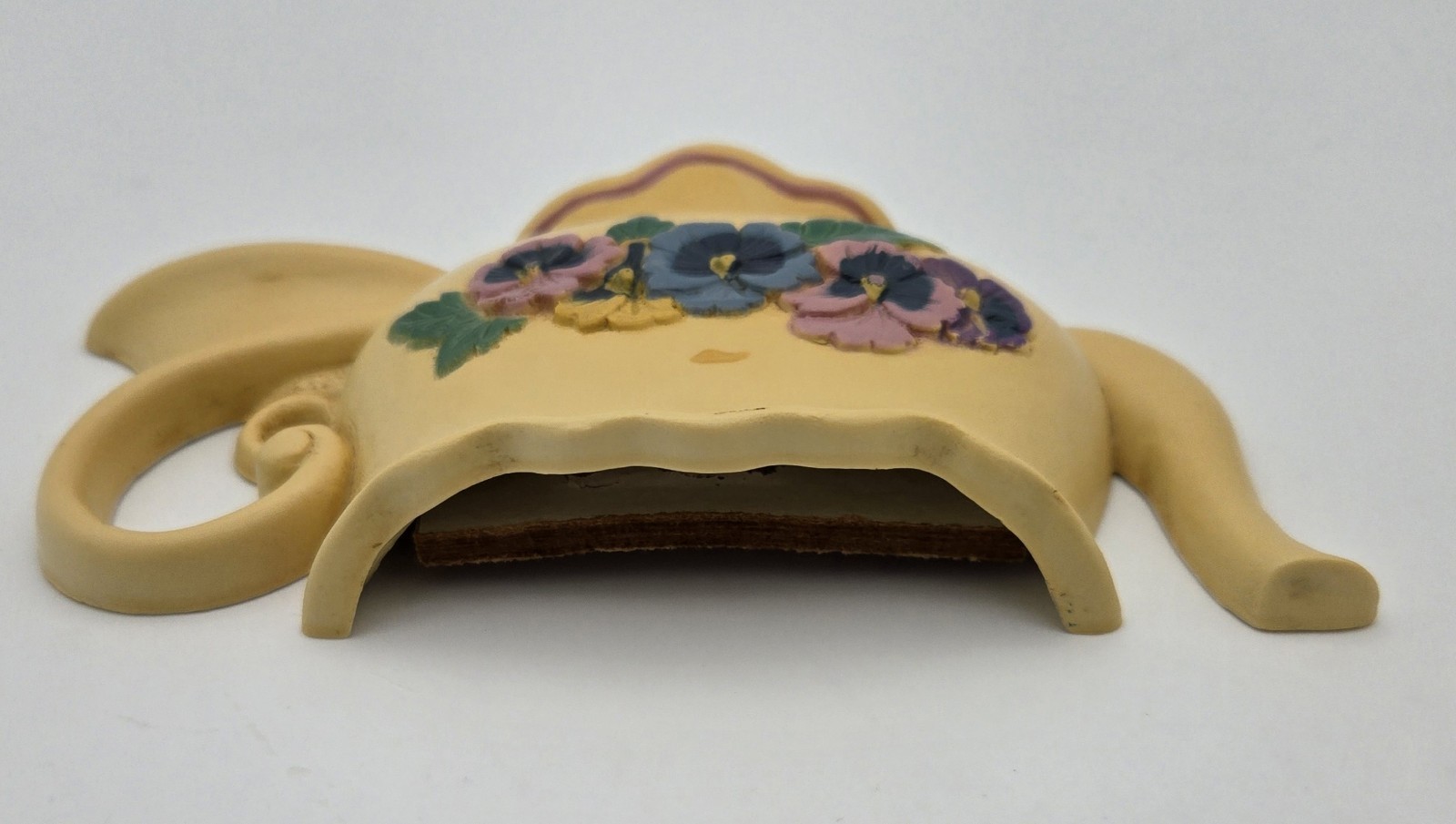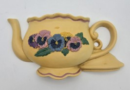 Vintage 1995 Burwood Pansy Teapot Wall Pocket Plaque Country Farmhouse Decor