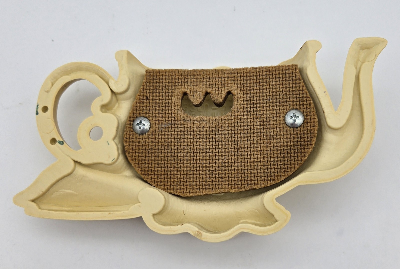 This vintage 1995 Burwood Products ?Country Farmhouse Pansy Teapot? wall pocket plaque is a charming piece of retro kitchen decor. Crafted from molded plastic with a textured finish, the design features a quaint teapot adorned with bright pansy flowers, perfect as a hanging pocket for small notes or utensils. The painted details remain vivid with minimal wear, and original mounting holes allow for easy wall display. Reflecting nostalgic bloom-era home interiors and country cottage style, this farmhouse accent adds a cheerful floral touch to any kitchen or garden-themed nook.