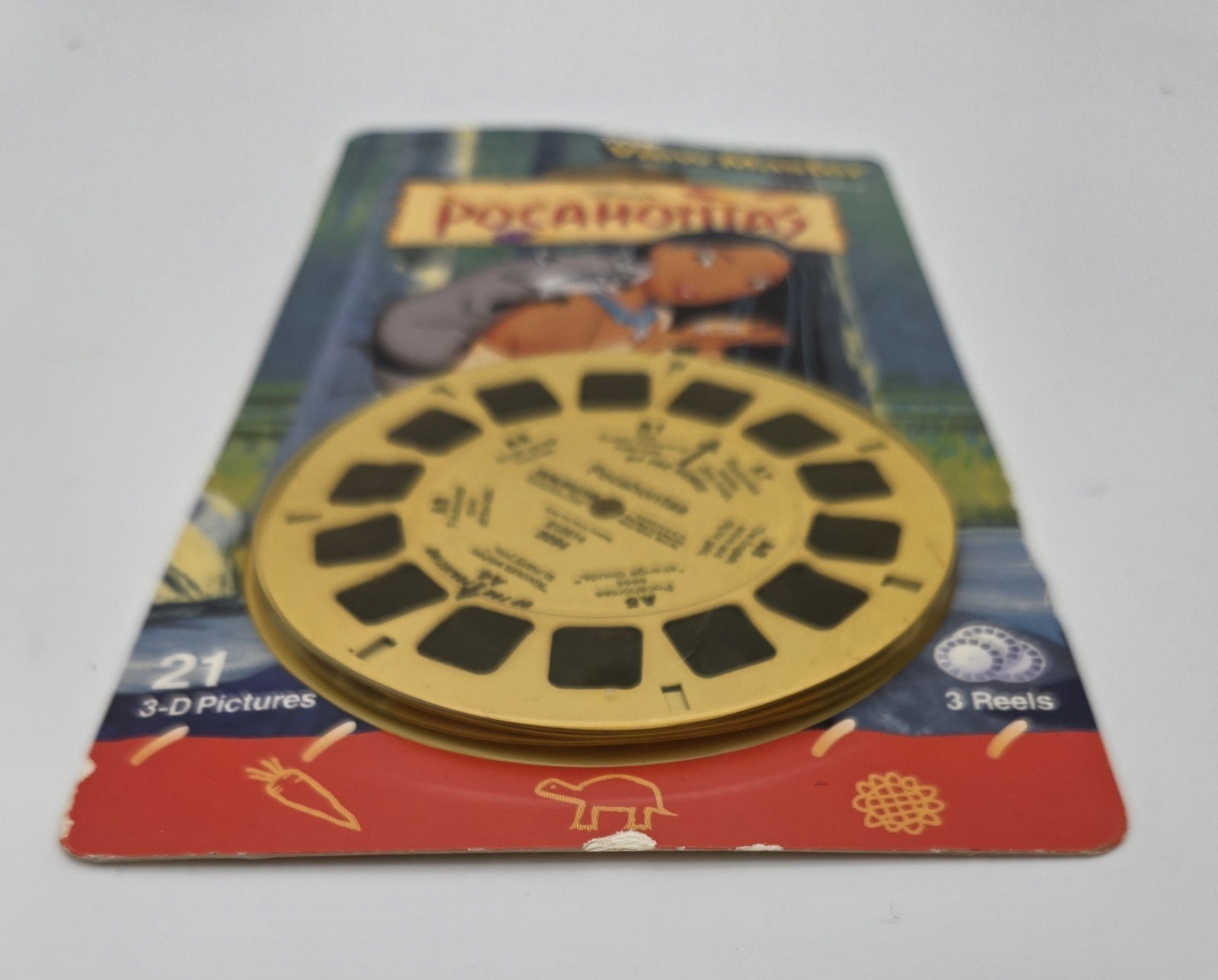 This is a sealed 1995 TYCO View-Master 3D reel set featuring Disney?s Pocahontas in stunning stereoscopic images. This New Old Stock (NOS) set includes all 3 original reels, untouched and factory-sealed in its colorful blister packaging. Produced by TYCO under license from Disney, this collectible features scenes from the beloved animated film and is part of the officially licensed View-Master 3-D Picture Reel series. The packaging showcases vibrant Disney artwork and includes a description of the scenes on the reverse side. A perfect addition for vintage toy collectors, Disney enthusiasts, or anyone seeking rare 90s memorabilia in pristine condition. A standout piece for sealed media collectors or retro display setups.