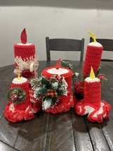 Vintage Crochet Christmas CANDLES Handmade Plastic Decor SET OF 5 RED