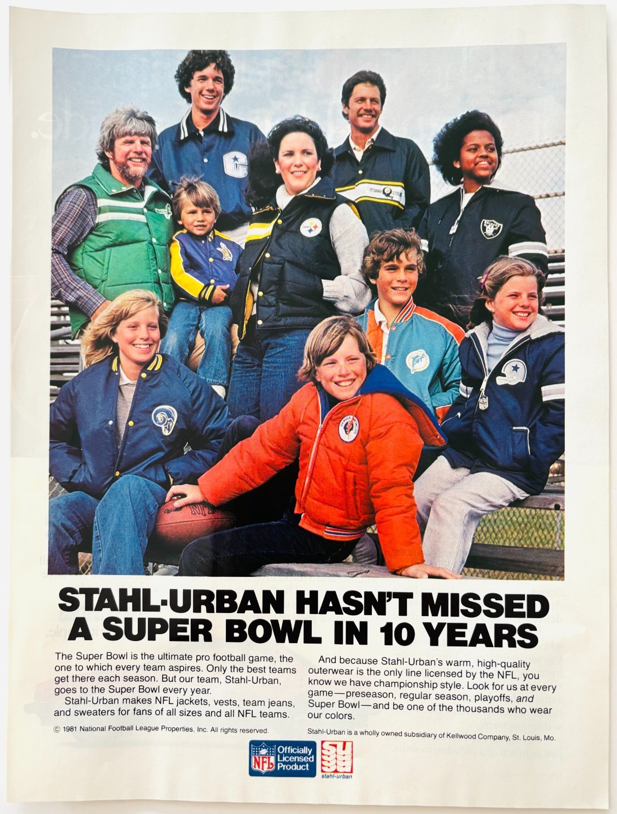 1981 Stahl-Urban Clothes Advertisement Vintage NFL Football Clothing DWV11B