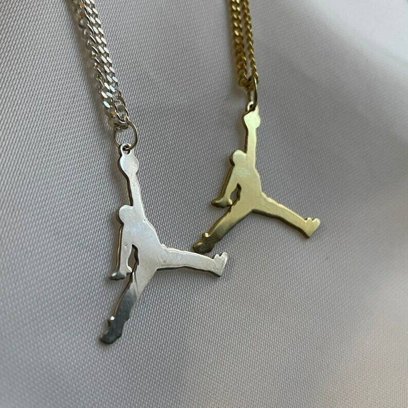 Celebrate the GOAT of basketball, with this iconic Jump Man gold necklace