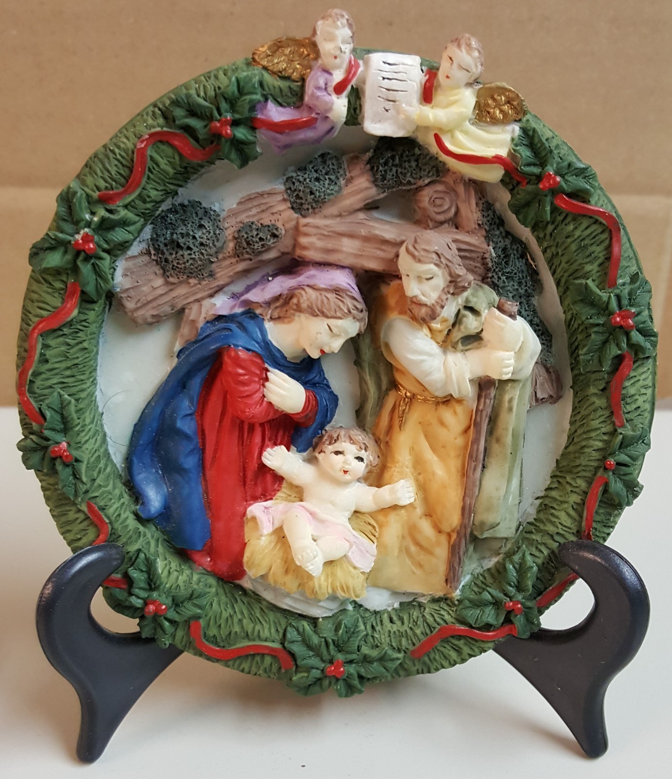 I) Miniature Nativity Plate Dish Display Christmas Holiday Decoration With Stand