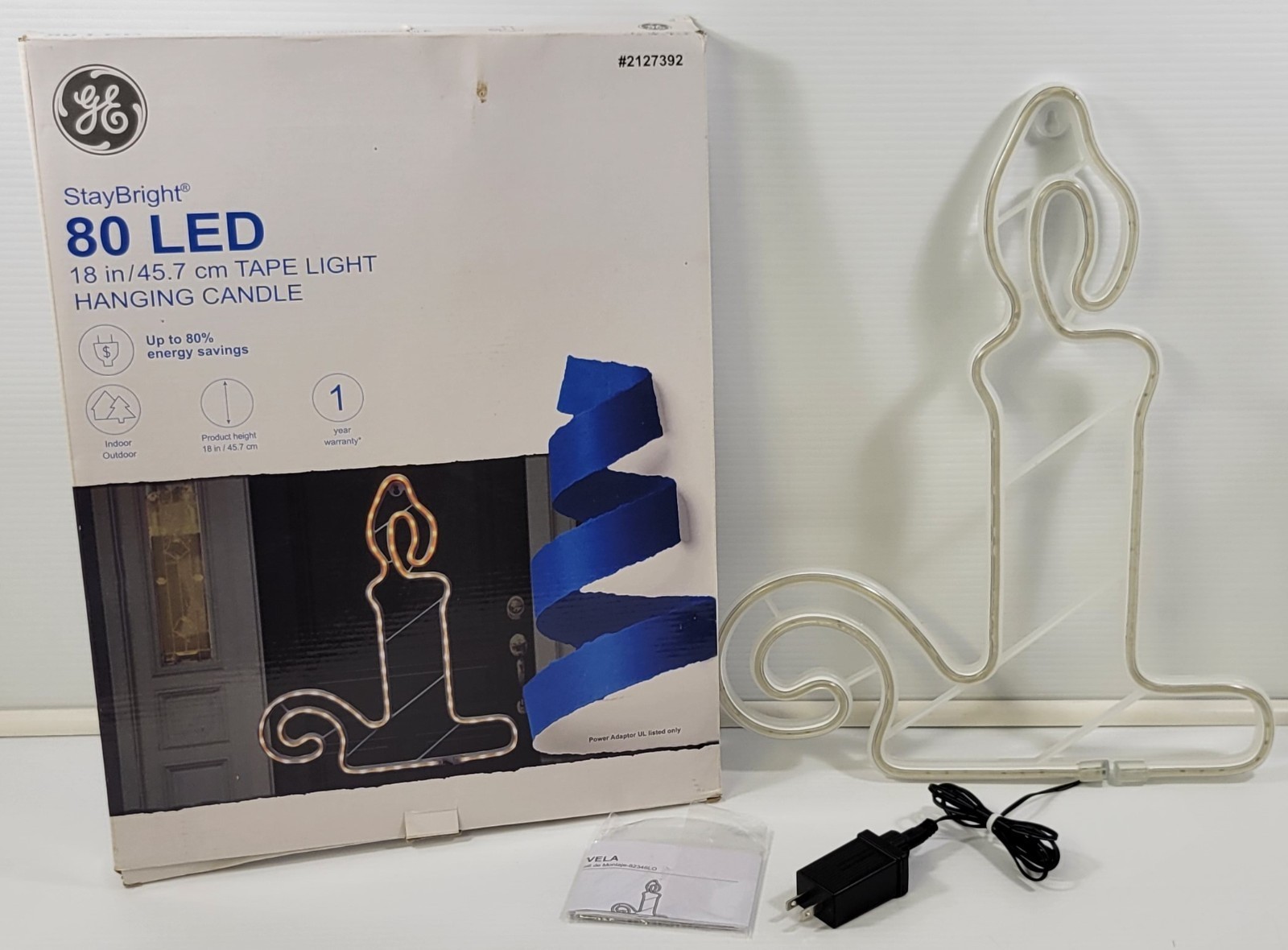 *B) Christmas GE StayBright 80 LED Tape Light Hanging Candle 18" Decoration