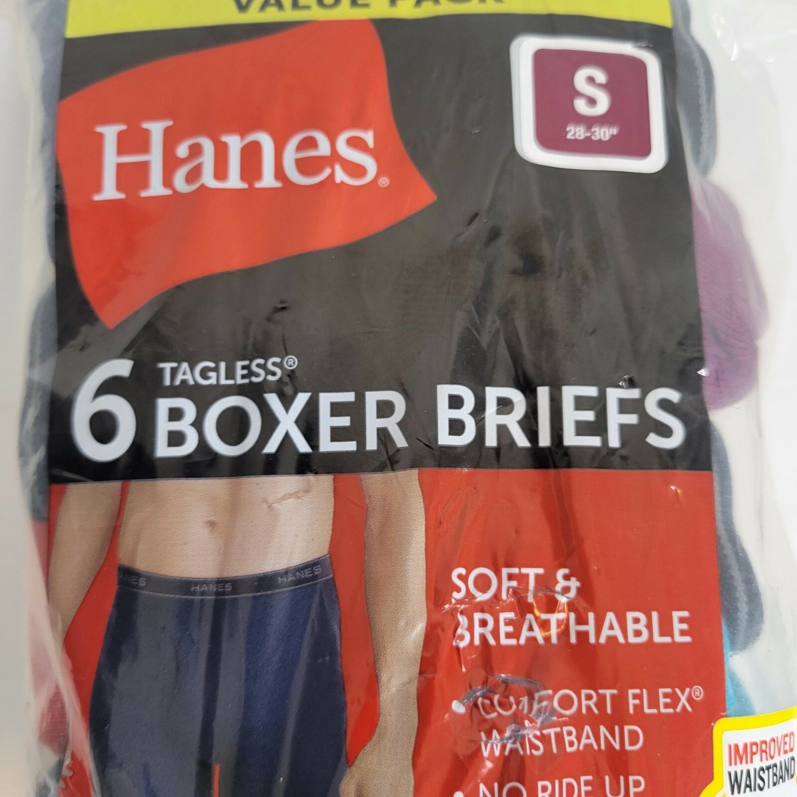 Hanes Boxer Briefs Value Pack 6 Tagless Small 28-30” Assorted Colors Blue Red