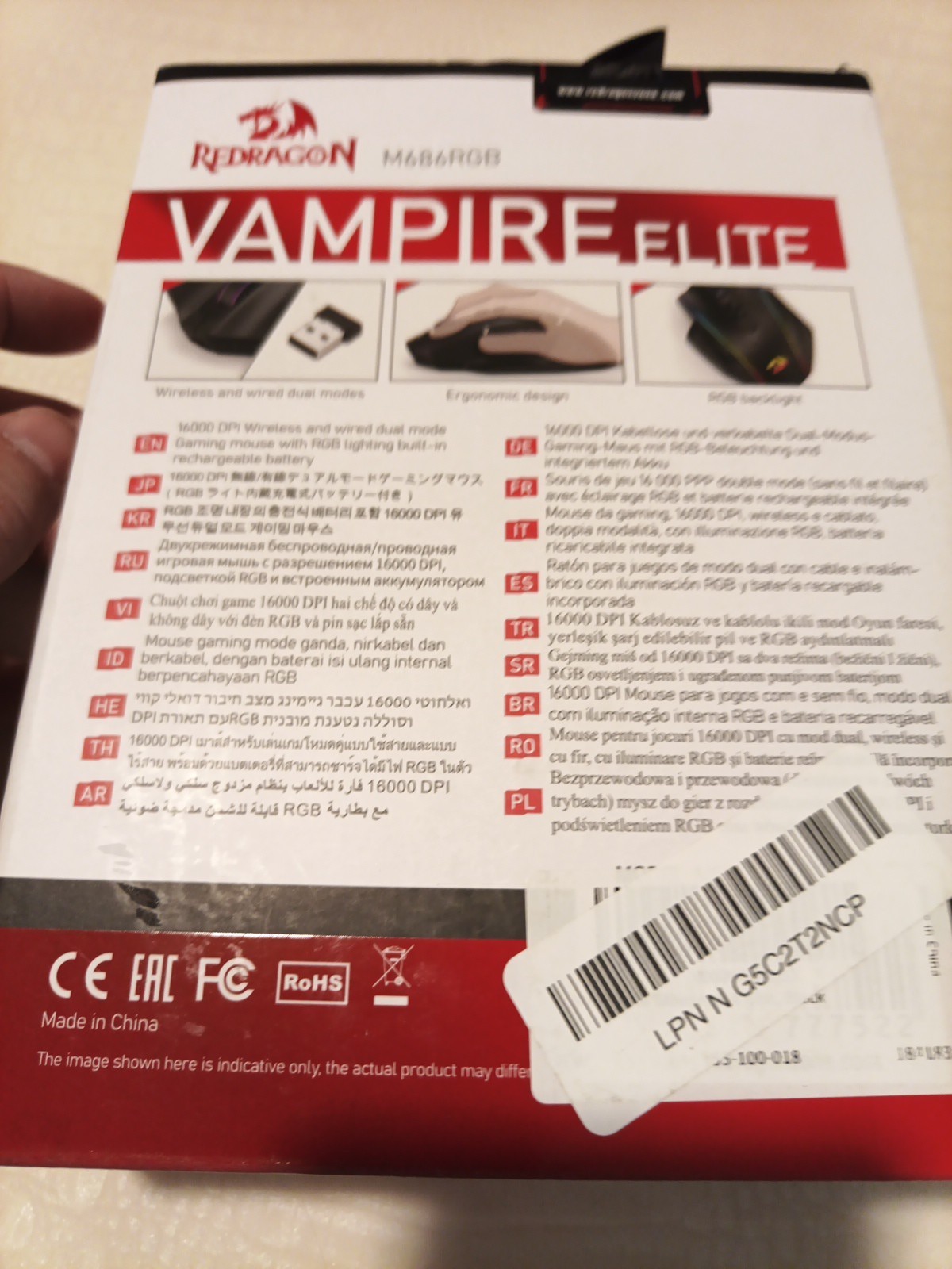 Red Dragon Gaming Mouse Vampire Elite M686RGB. OPEN BOX , DAMAGED BOX. SEE PICS