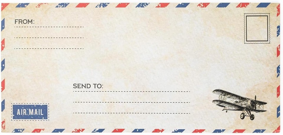 WIDE APPLICATIONS - Use as vintage looking airmail nvelopes, air mail writing envelopes, vintage looking airmail envelopes, invitations, Christmas Envelopes, love letter envelopes, military correspondence, military envelopes, envelopes to troops, scrapbooking, creating fun envelopes and party invitations.