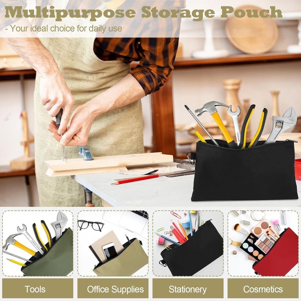 4 Pack Tool Bag, Small Tool Pouch with Zipper, Premium Utility 12.5 x 7"