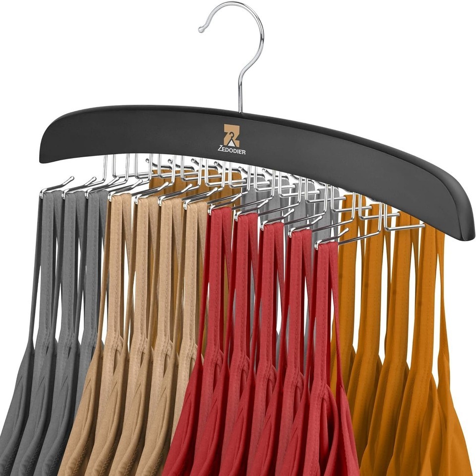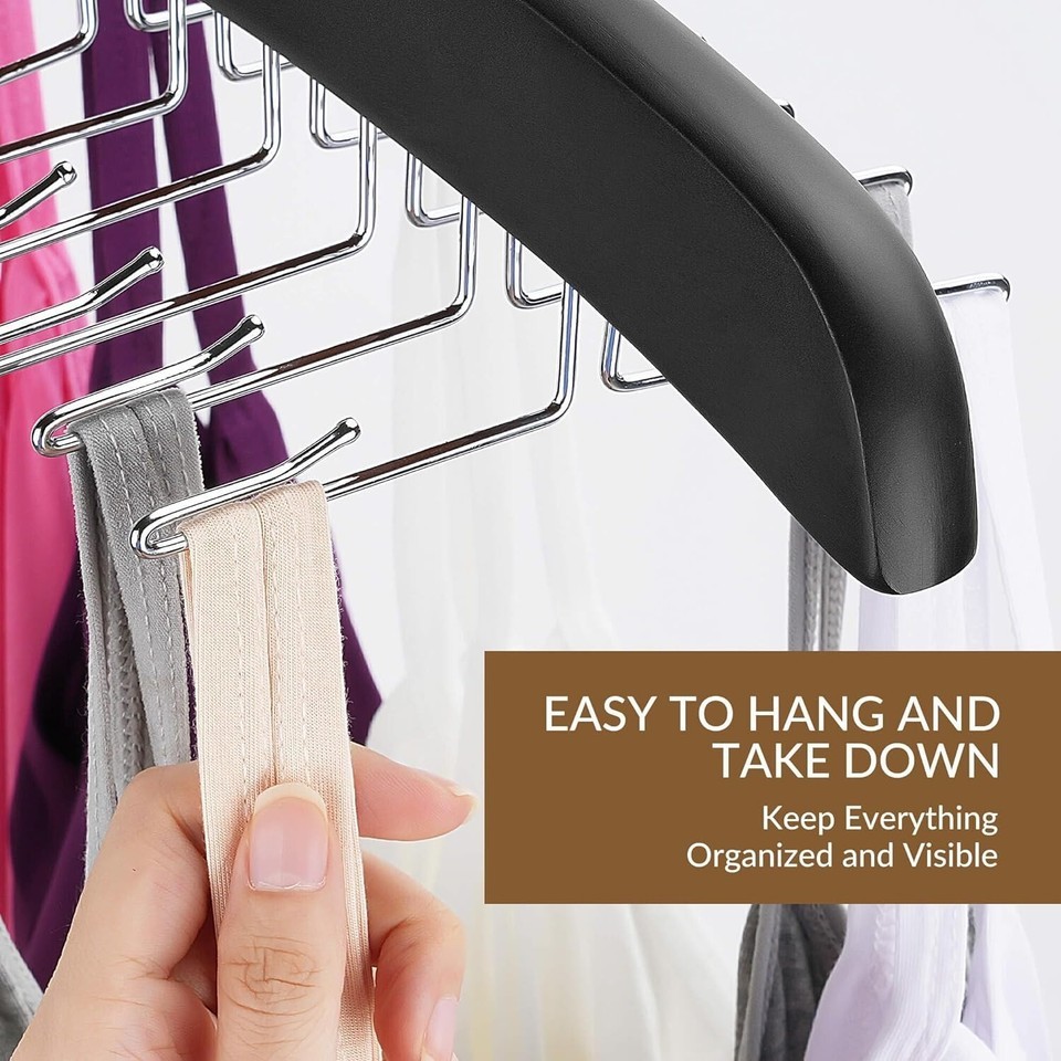 Ample Storage Capacity: With 24 adjustable hooks, our hanger can hold up to 24 tank tops or ties, or 12 pieces of bras, keeping your accessories and undergarments impeccably organized. Say goodbye to clutter and hello to a well-arranged wardrobe.