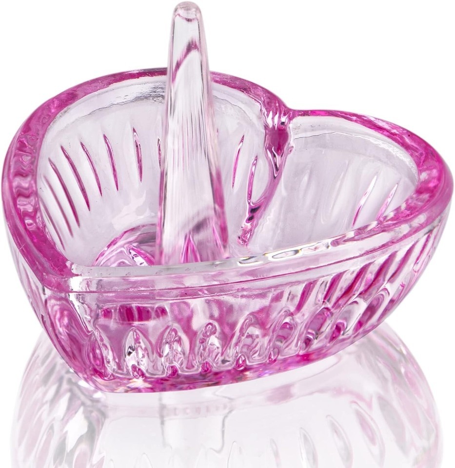 ?RING HOLDER FOR JEWELRY: Using high grade K9 crystal as raw material, so shiny that it will reflect bright spots in the sun. Exquisite shape with carefully carved, pink plated color makes it cute and charming, which is deeply loved by ladies. Material: Crystal. Size: 3.1*3.1in.
