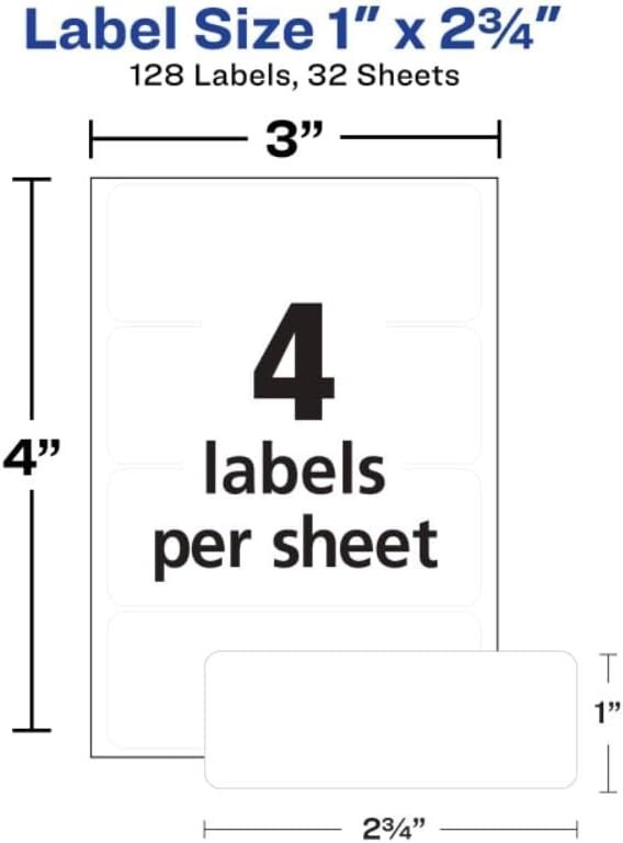 Avery Multi-Use Permanent Labels, 1" x 2.75", White, Non-Printable, 128 Blank