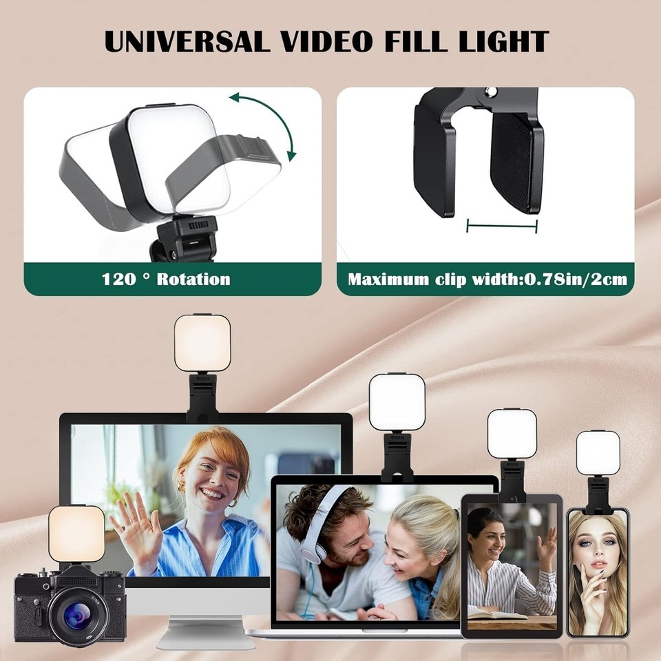 ?Stably Fixed on the Laptop and Phone? The non-slip silicone inside the led phone light clip holds the device securely and protects the screen from damage. Easily clip lights where you need them. The angle of the photo light can be adjusted by 100 by rotating the clip, making it easy to find a suitable angle for your shooting
