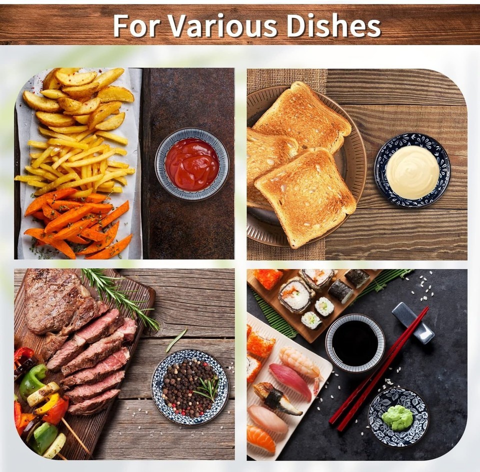 VINTAGE DESIGN: Each of these soy sauce bowls is a unique and gorgeous pattern inspired by Chinese blue and white porcelain with an antique and elegant glaze, that will perfectly enhance your table decor.