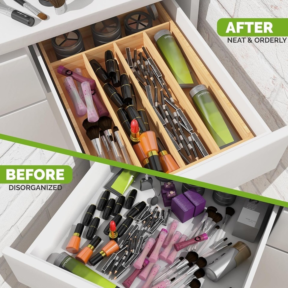 Measure drawer size before ordering - Ensure a perfect fit for our Bamboo Expandable Silverware Organizer by measuring your drawer size before ordering. This step guarantees optimal organization and utility within your kitchen cabinets or drawer spaces. Proper measurement ensures that you can enjoy the optimal organization and utility of this premium kitchen and dining accessory. Our organizer is designed to enhance your kitchen essentials and maximize storage efficiency.