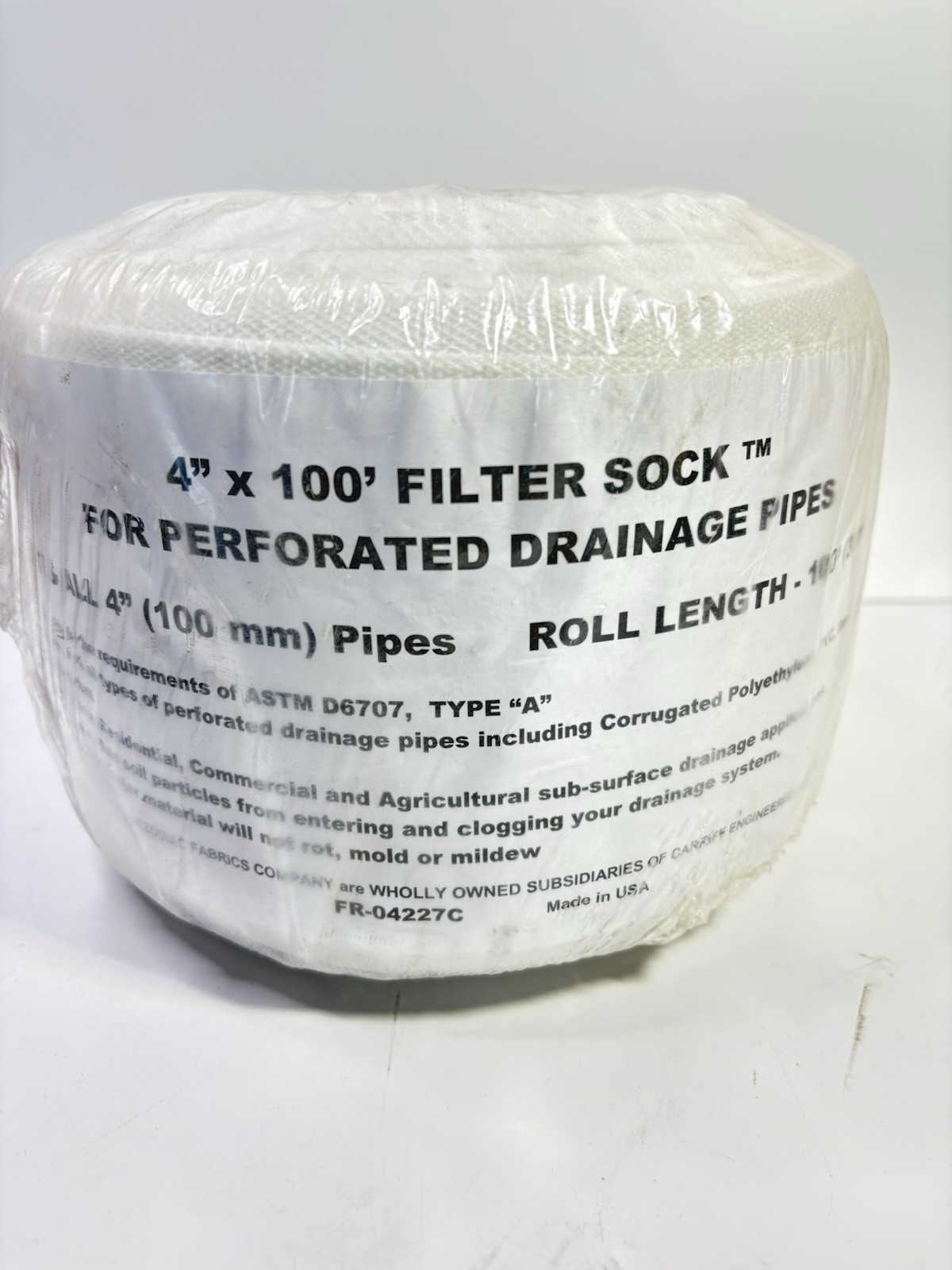 Brand new roll of 100% polyester filter sock fabric for 4? drainage pipe. Keeps sediments from clogging your drain pipes.