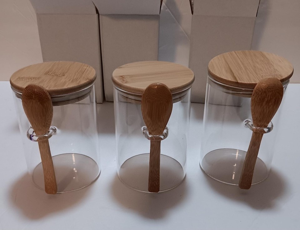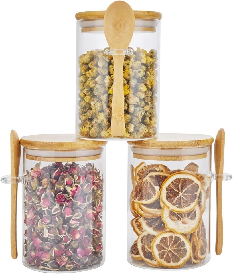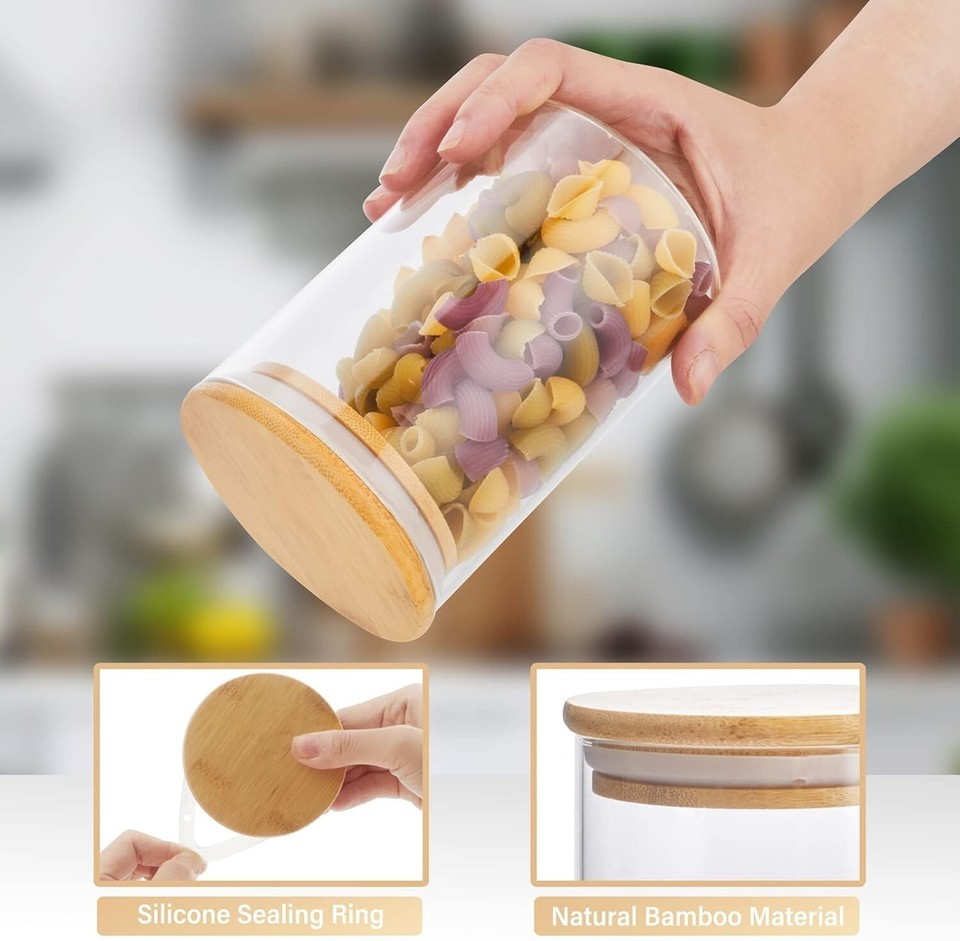 ? Glass Jar Set: Made of high-quality borosilicate glass, these jars are durable and resistant to cracking. Equipped with natural bamboo material lid and spoon, practical and simple, adding a touch of elegance to your kitchen or pantry.
