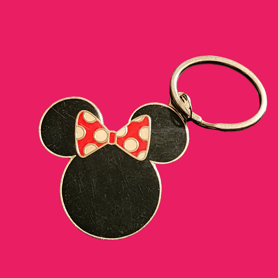 Disney Parks Metal Red Bow Minnie Mouse Keychain Key Ring