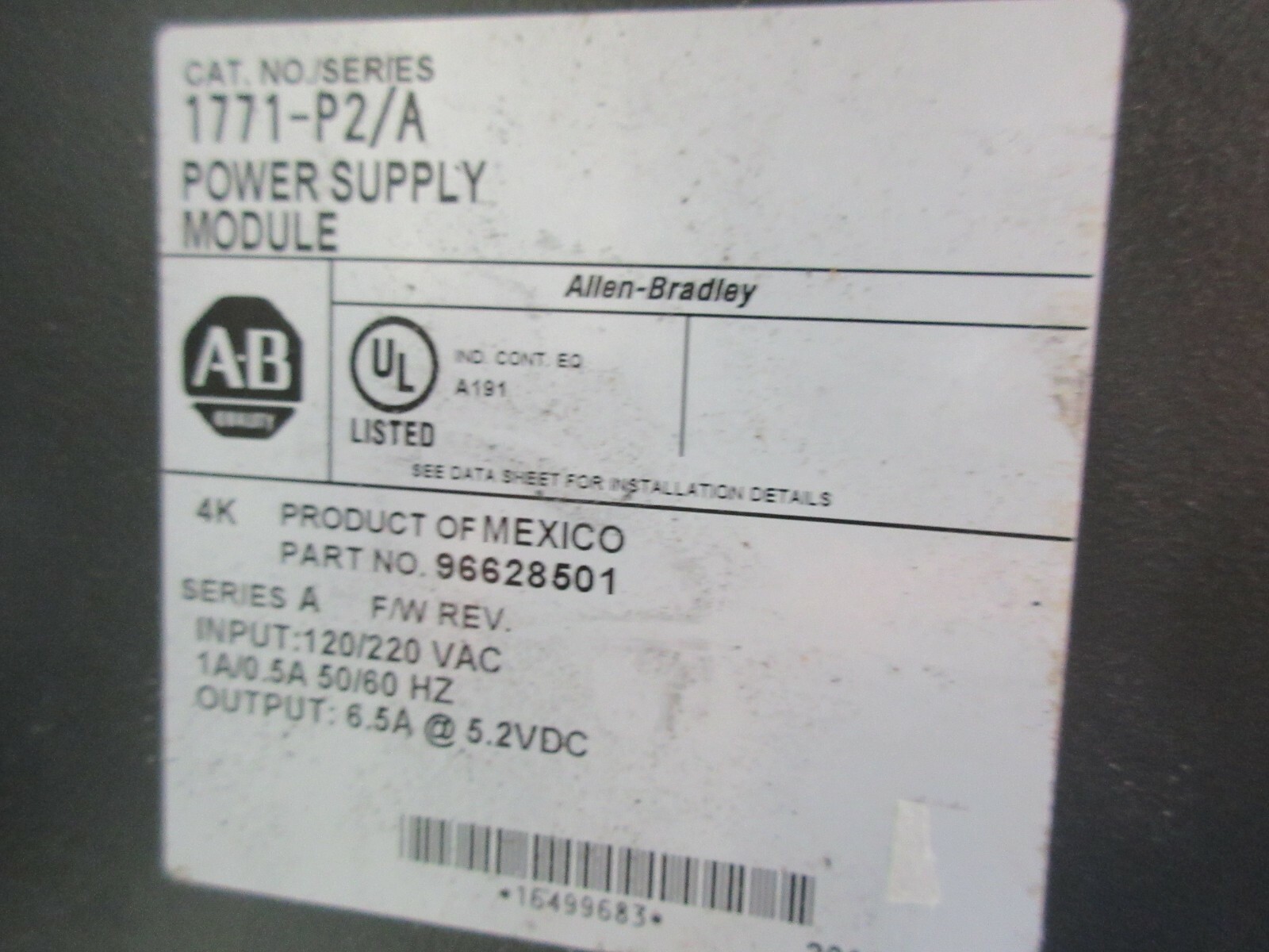 ALLEN BRADLEY POWER SUPPLY MODULE CAT. NO. 1771-P2/A A191 1771-P2 75VA EACH 1