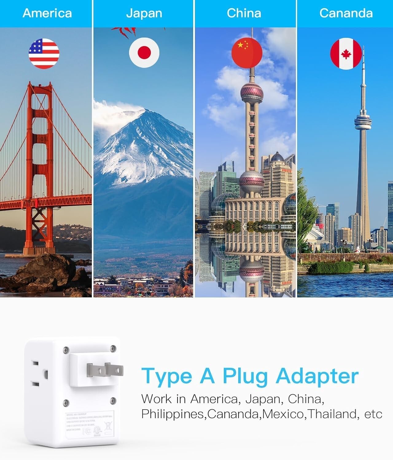 This Japan Power Adapter with a Type A plug is compatible across multiple regions including Japan, Philippines, Canada, Mexico, China, and more. Its mini design (2.6*1.9*1.5 inches) features an indicator light to show power status, making it ideal for travel via cruise ships or international trips.