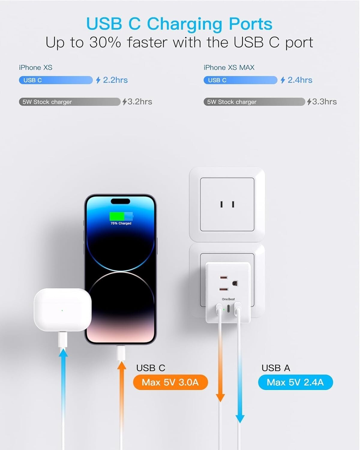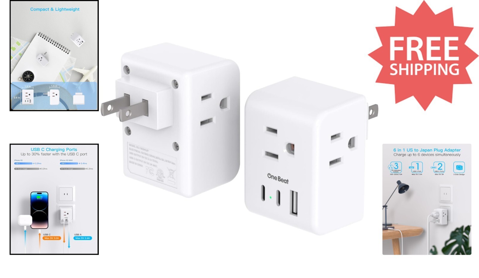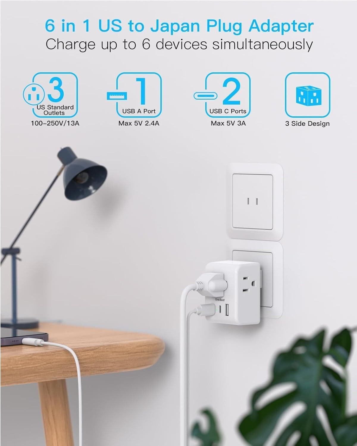 With smart charging technology, the USB ports automatically detect connected devices to optimize speed?up to 3.1A across three ports, with USB-C delivering up to 3A. Crafted from fireproof material, this adapter ensures safety and reliability for indoor and hotel use. Its three-sided design with ample spacing prevents blocking other outlets, making it suitable for various equipment.
