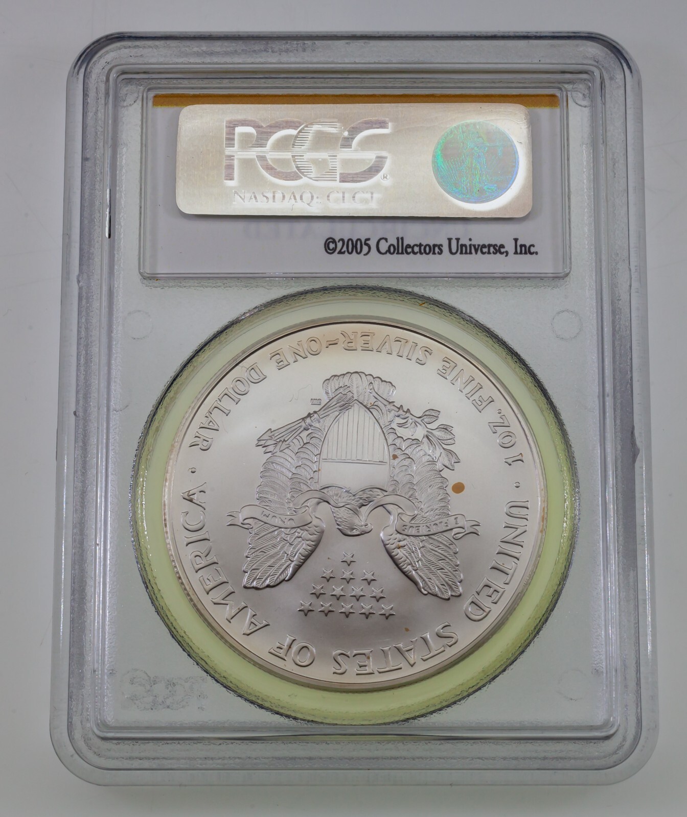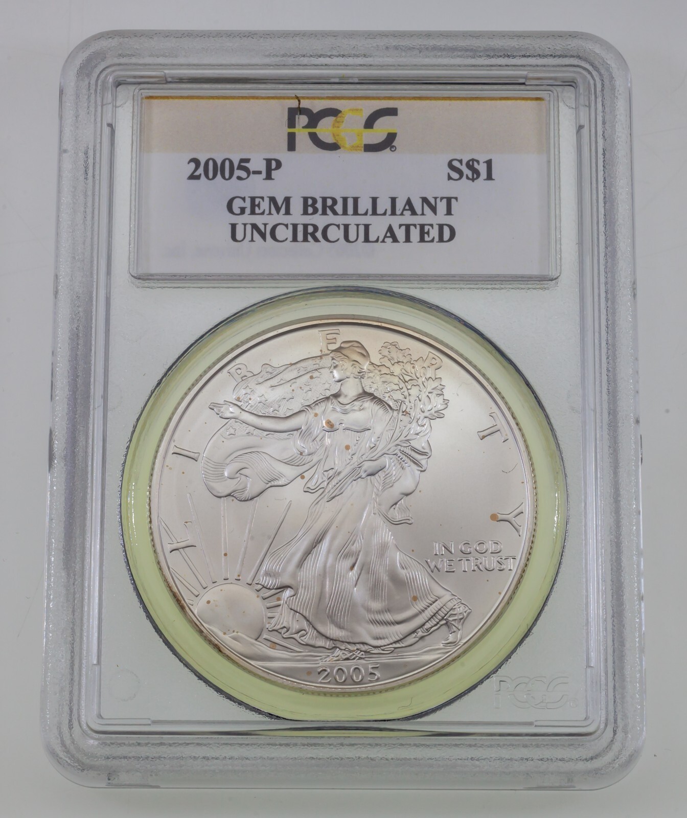 2005-P S$1 Silver American Eagle Slabbed by PCGS as Gem Brilliant Uncirculated