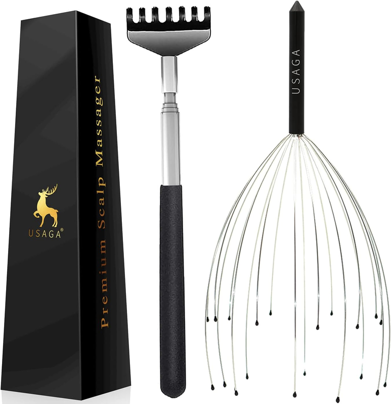 20 Fingers Head Massager Scalp Massager Head Scratcher Extendable Back Scratcher, Stocking Stuffers Gift for Scalp Body Relaxing (Black)
