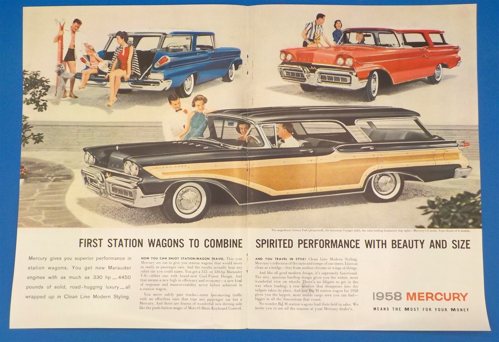 1958 Mercury Station Wagons, Colony Park, Voyager & Commuter 2 Page PRINT AD BX3