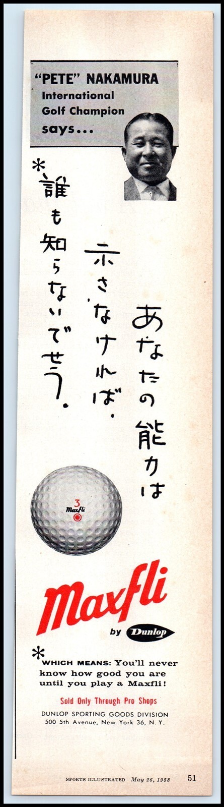1950s Maxfli "By Dunlop" Golf Balls PRINT AD Pro Golfer Pete Nakamura BX3