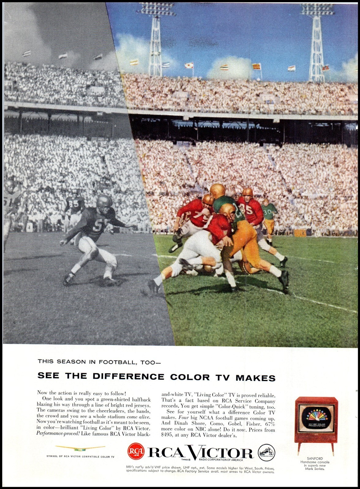 1950s RCA Victor "Living Color" "The Sanford" TV PRINT AD Football BX4