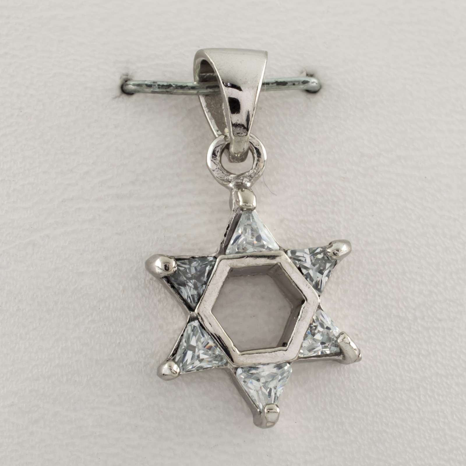 Sterling Silver Star of David Pendant w/ Crystal Accents
