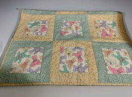 Vintage Handmade Quilt Pastel Ghingham Stripe Teddy Bears Quilt Baby Blanket