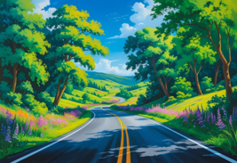 What you see is a road full of lush green plants and trees, a scene that is surely a wonderful sight to see in roadtrips. “Breathtaking Interval” shows a lively imagery of a road surrounded by the richness of nature. Although the lighting used is warm, the overall appearance of the piece features a dominant set of cold colors ranging from the blues and greens. The presence of the warm lighting thanks to the sunlight, it makes the piece balanced by adding a little bit of contrast. The feeling it tries to evoke is positive, a great piece to remind and inspire you of the joy in going to an adventure where nature accompanies you in every mile.