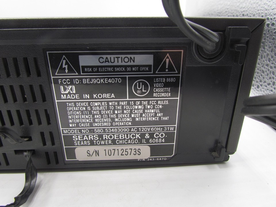Sears Roebuck LXI Series Model 580.53483090 VCR VHS