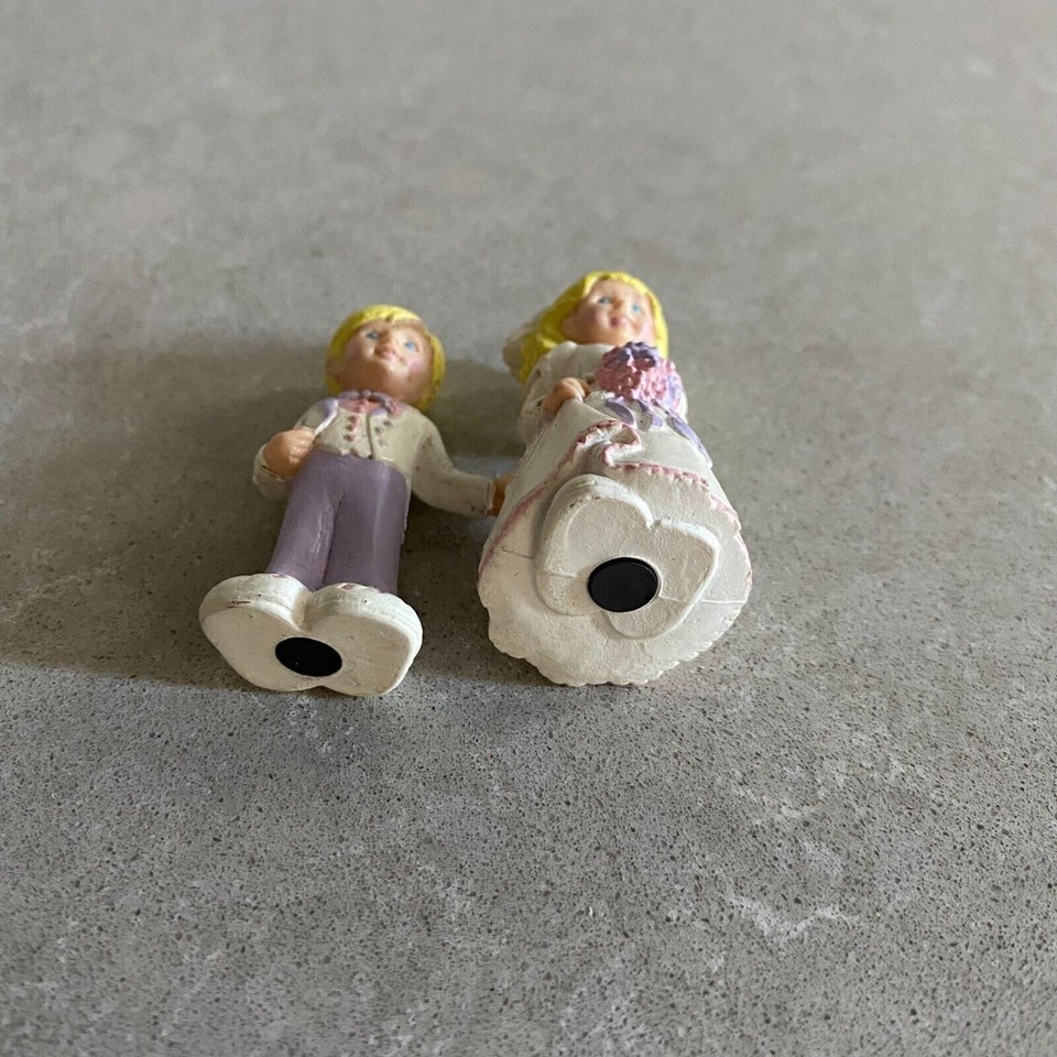 This Fisher Price Precious Places Wedding Set is a delightful addition to any Precious Places collection! The set includes various wedding-themed pieces and figures, all in good overall condition with some minor discoloration due to age. Please note that the key is not included.