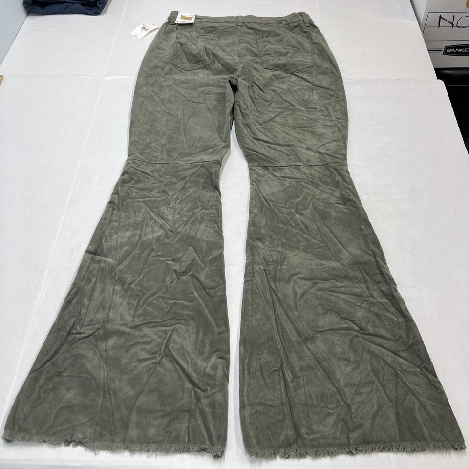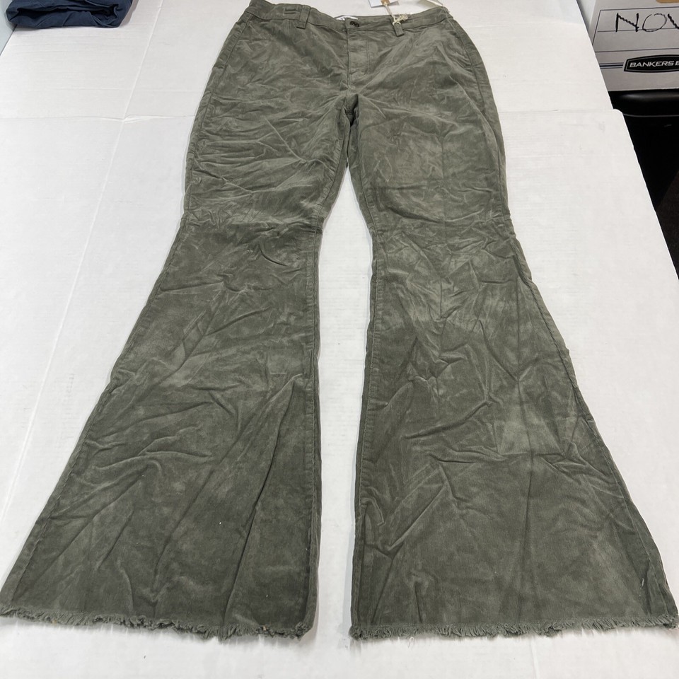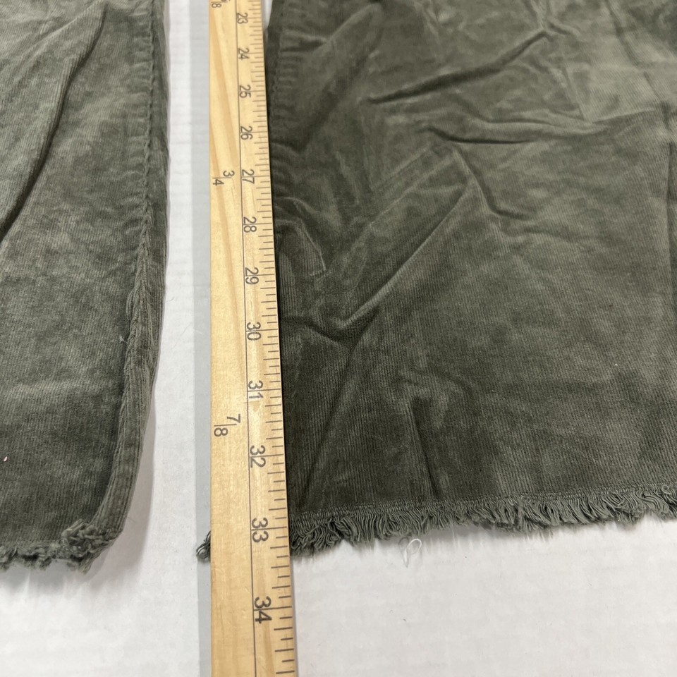 YMI Pants Women 15 Green Corduroy Wide Leg High Rise Flare Raw Hem Boho Hippie