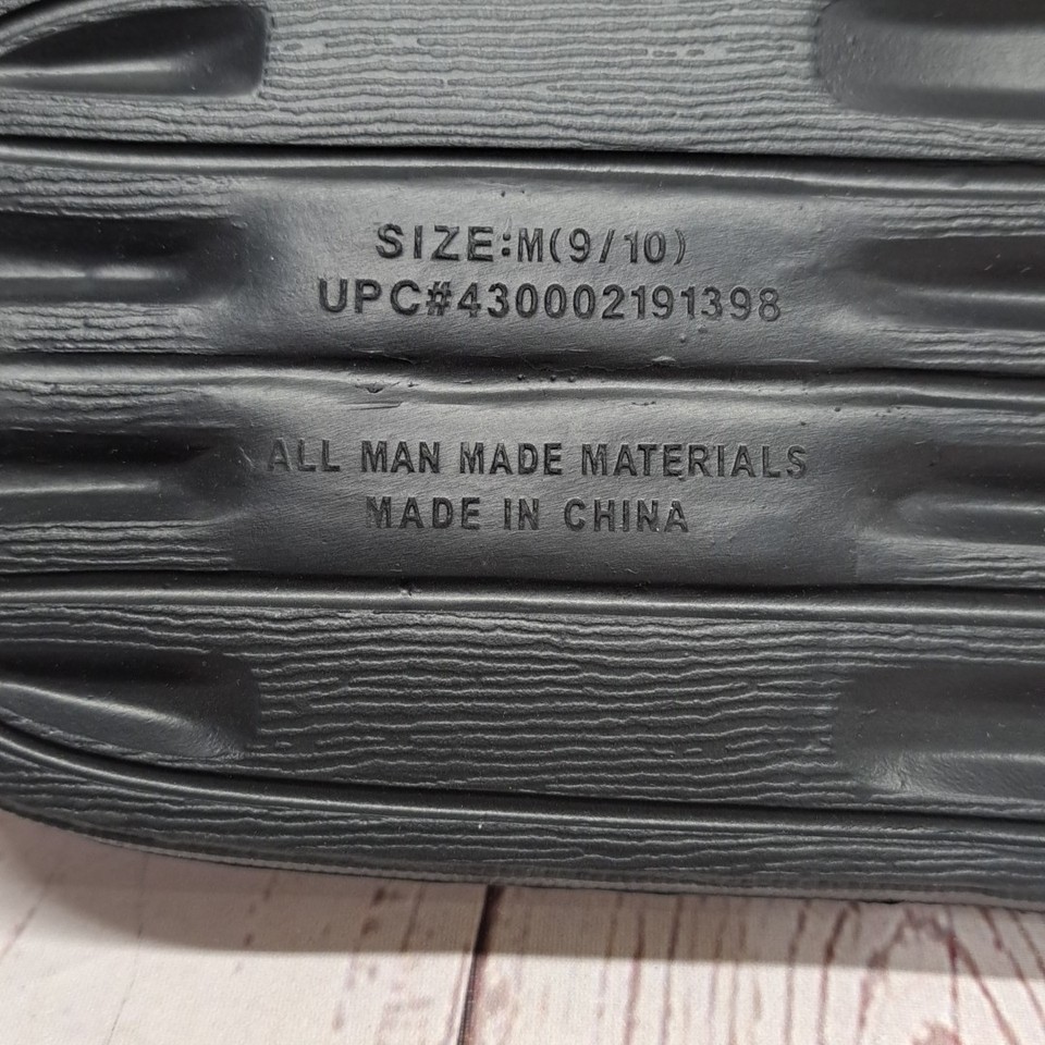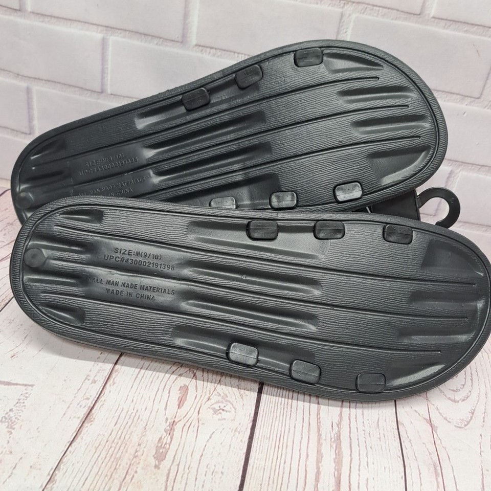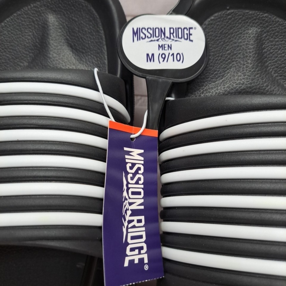 Mission Ridge Men's Slides Black White Ribbed Strap Sandals Shoes Size 9/10