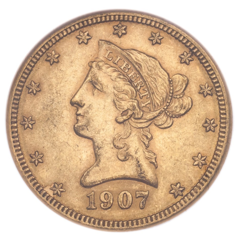 1907-DG$10 Gold Liberty Head Classe par NGC comme AU-58 ! Publie par GSA !