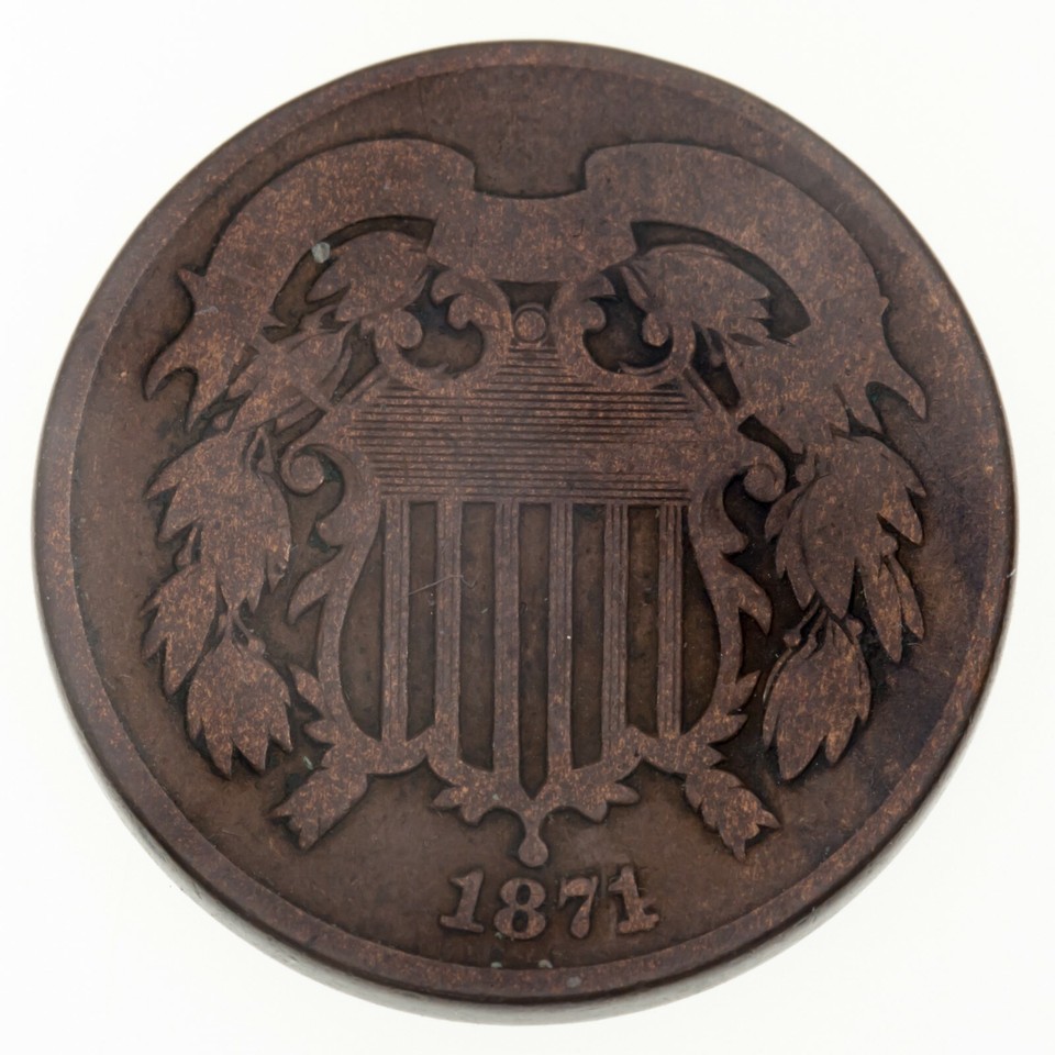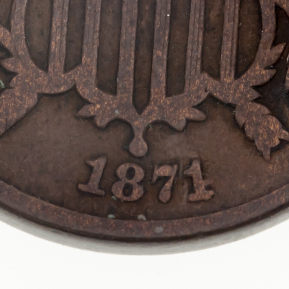 1871 Piece de deux cents, bon etat, toute couleur brune, jantes pleines