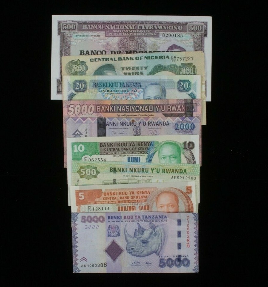 Africa 9-Notes Currency Lot Kenya, Mozambique, Nigeria, Rwanda & Tanzania- sh...
